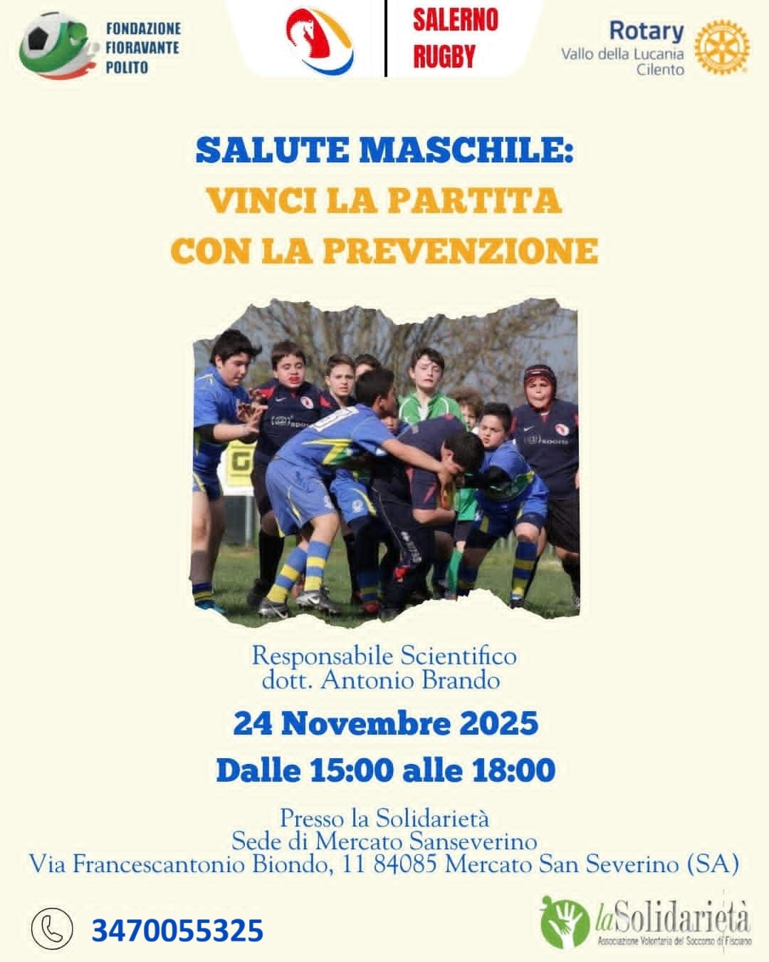 Nella giornata di lunedì 24 novembre, dalle ore 15,00 alle ore 18,00 i giovani iscritti all’Associazione Sportiva Salerno Rugby, presieduta da Giuseppe Forestiero, aventi un ‘età compresa tra i 14 e i 18 anni, potranno sottoporsi ad una visita uro-andrologica gratuita eseguita dal dottor Antonio Brando, Urologo, presso la sede di Mercato San Severino dell’associazione di volontariato “La Solidarietà”. L’iniziativa rientra nell’ambito del progetto rotariano “Salute Maschile: Vinci la partita con la prevenzione”, promosso dal “Rotary Club Vallo della Lucania – Cilento” , presieduto da Attilio Bianco, in collaborazione con la “Fondazione Fioravante Polito”, presieduta da Davide Polito, e con le associazioni sportive del territorio provinciale come, in questa giornata, con l’ Associazione Sportiva Salerno Rugby , presieduta da Giuseppe Forestiero, i cui atleti si allenano sul campo di rugby di Ciorani di Mercato San Severino, in Via Nocelleto. Il dottor Brando, Past Governor del “Distretto Rotary 2101”, ha ideato questo progetto con l’intento di educare i giovani alla prevenzione:” Secondo le statistiche un ragazzo su quattro non è andato mai dall’urologo e noi vogliamo offrire ai ragazzi dai 14 ai 18 anni una visita andrologica, con valutazione ecografica. In questa fascia di età c’è una grande incidenza di patologie andrologiche quali il varicocele, l’idrocele, la fimosi, il testicolo retrattile, il tumore del testicolo. Insegniamo anche ai ragazzi ad eseguire correttamente l’autopalpazione del testicolo. Il progetto, che è nato nel Cilento, una terra legata alla “Dieta Mediterranea”, che raccomandiamo ai giovani di seguire dopo la visita, sta interessando anche altri comuni della nostra provincia: abbiamo già organizzato un incontro con le società calcistiche del Comune di Giffoni Valle Piana nell’ambito del “Giffoni Film Festival”. Il nostro obiettivo è quello di raggiungere un numero minimo di 400 ragazzi schedulati per poi organizzare, in primavera, una presentazione dei dati raccolti alla presenza del Presidente della “Federazione Gioco Calcio”, Gabriele Gravina, per lanciare questo progetto di prevenzione andrologica sul territorio nazionale”. (foto di Armando Cerzosimo).
