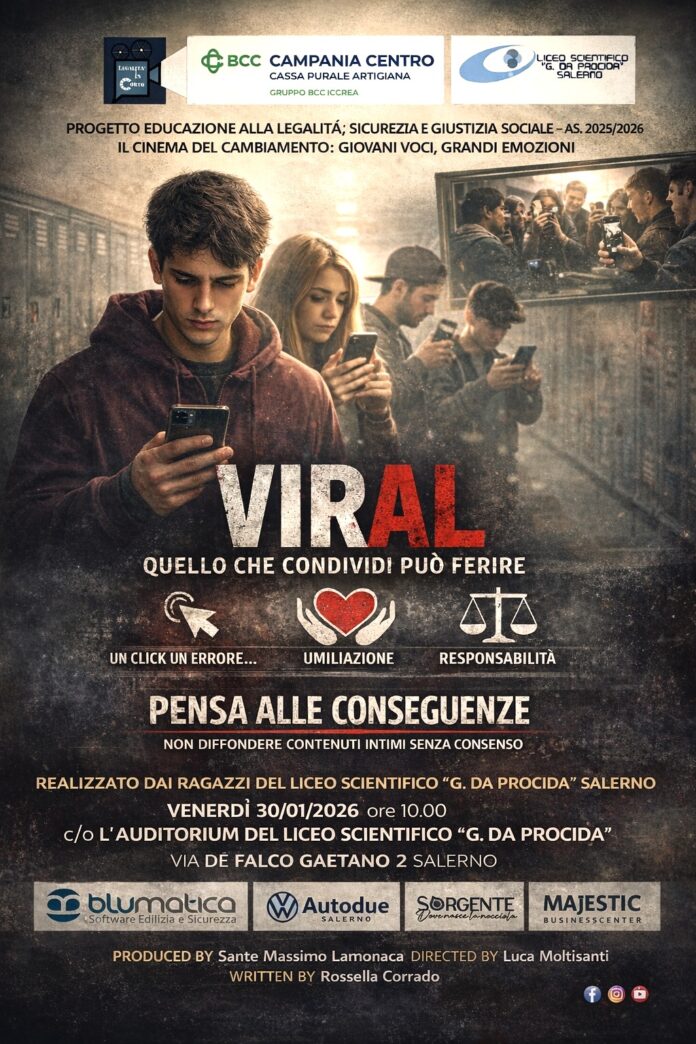 Venerdì 30 gennaio alle ore 10:00, presso l’Aula Magna del Liceo “Da Procida” di Salerno, sarà presentato alla stampa il nuovo cortometraggio realizzato nell’ambito del progetto “Educazione alla Legalità, Sicurezza e Giustizia Sociale”, storica iniziativa educativa attiva dal 2002 su tutto il territorio nazionale.