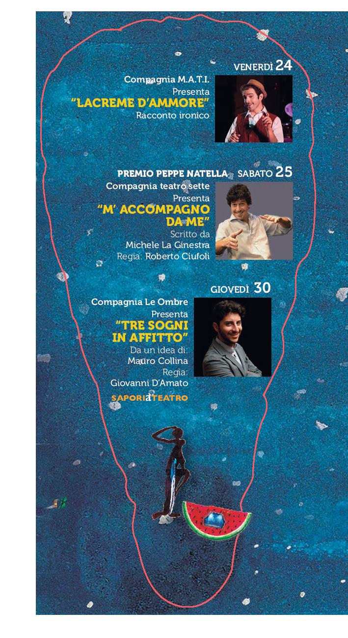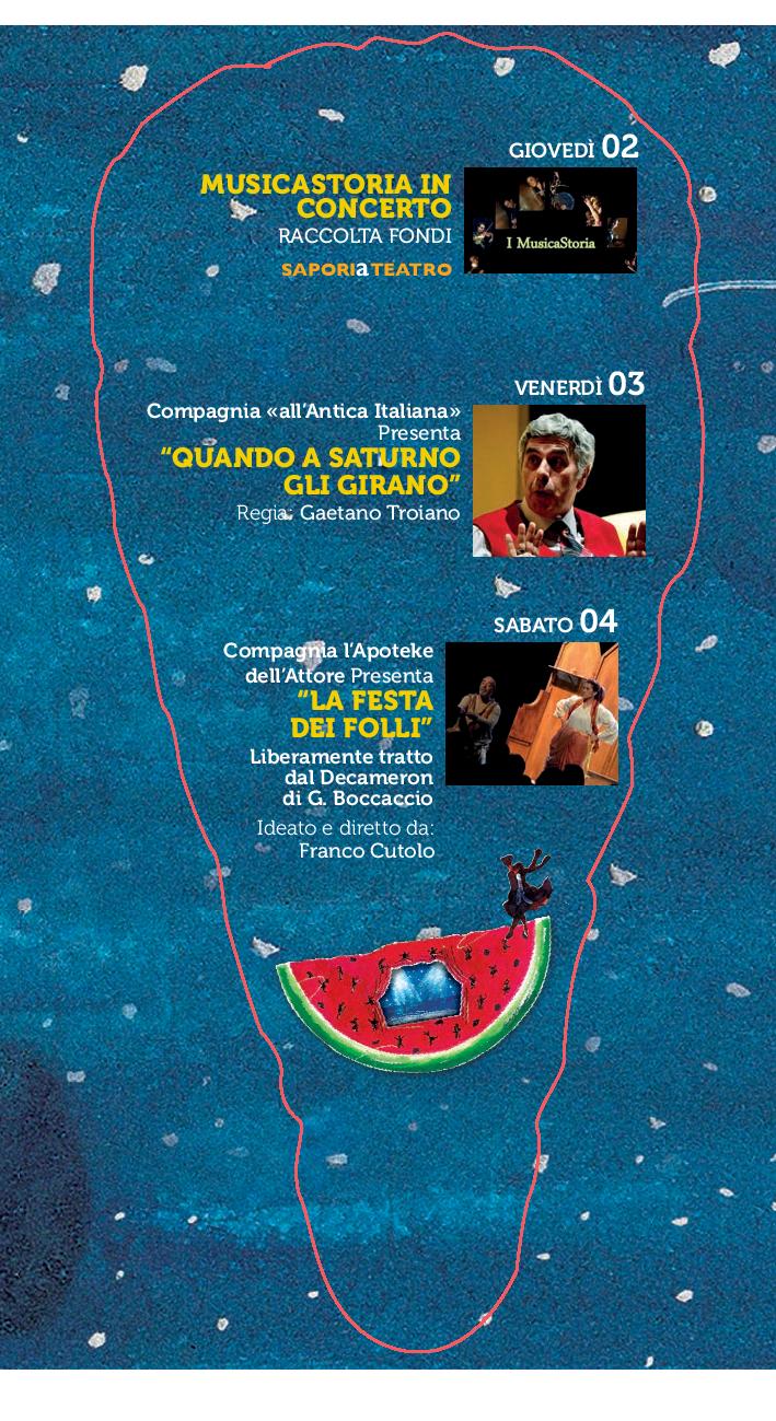 Torna anche quest’anno il felice connubio con Coldiretti Salerno ed il progetto “Sapori a teatro”. Nelle serate del 2-10-16 e 25 agosto, gli spettacoli saranno arricchiti da degustazioni gratuite di prodotti tipici ed eccellenze agricolo del territorio salernitano.